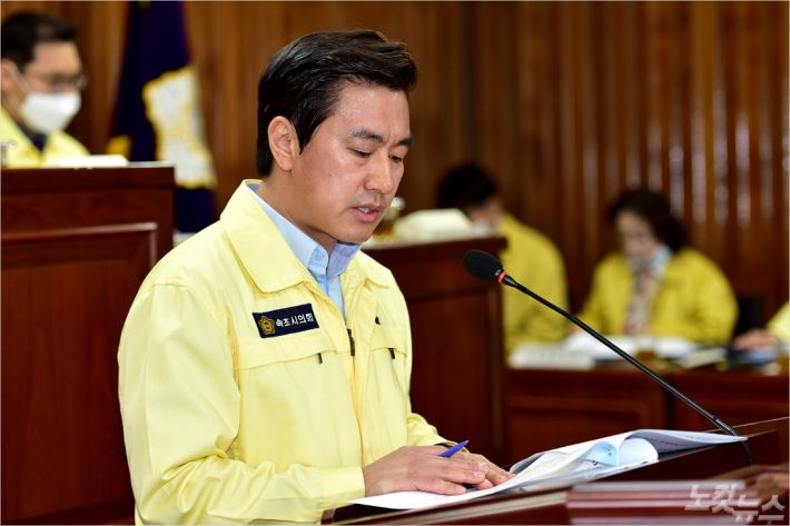 속초시의회 김명길 의원이 5분 발언을 하고 있다. (사진=속초시의회 제공)