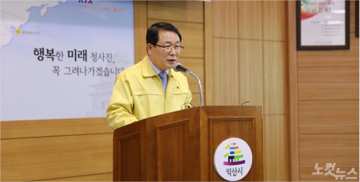정헌율 익산시장은 9일 익산시청 종합상황실에서 "최근 문제가 된 재난기본소득의 형평성 문제를 해소하고 지역 내 경기 진작 효과를 극대화하기 위해 전국 최초로 복합형 재난기본소득을 도입했다"고 말했다.