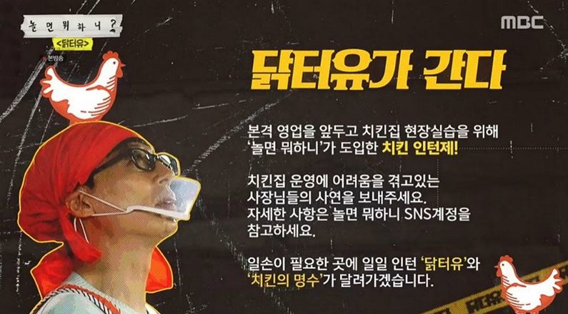 MBC 인기 예능 프로그램 '놀면 뭐하니?'가 새로운 프로젝트 '닭터유가 간다'를 진행한다.
