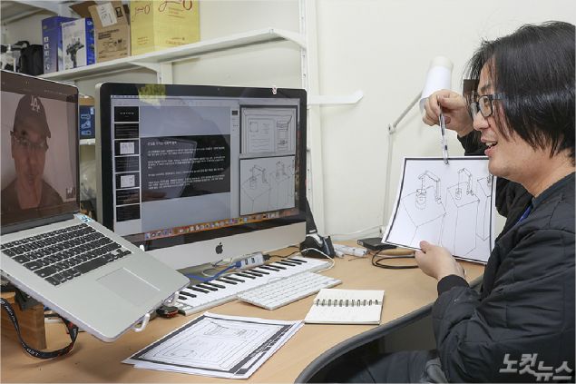 영남대학교 미술학부 신기운 교수가 구글 미트(Meet)를 활용한 온라인 실시간 수업에서 학생들의 실습과제를 지도하고 있다.