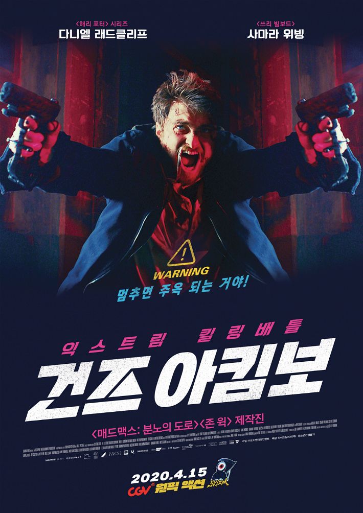'건즈 아킴보'(감독 제이슨 레이 하우덴)는 파리 한 마리 못 죽이지만 키보드만 잡으면 터미네이터가 되는 찌질한 남자 마일즈(다니엘 래드클리프)가 진짜 목숨을 건 게임 '스키즘'에 강제 로그인되면서 양손에 총을 박제한 채 추격을 벌이는 영화다.