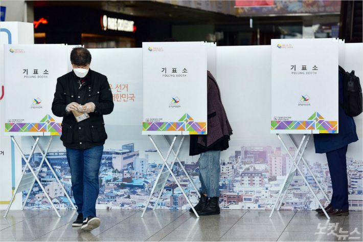 제21대 국회의원선거 사전투표 첫 날인 지난 10일 서울역에 마련된 남영동 사전투표소에서 시민들이 투표를 하는 모습.(사진=윤창원 기자/자료사진)