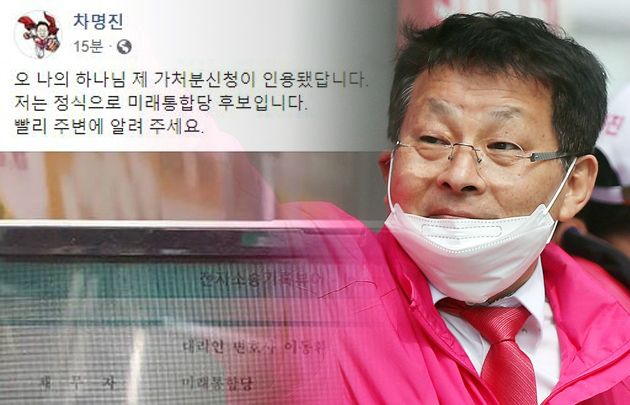 '세월호 막말 논란'으로 미래통합당에서 제명됐던 차명진 후보(경기 부천병)가 당의 제명 결의에 대해 효력을 정지시켜 달라며 낸 가처분 신청을 법원이 14일 인용했다. 이로써 차 후보는 통합당 후보 자격을 유지하게 됐다.
