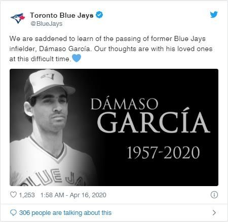 20일(한국 시간) 63세의 나이로 숨진 다마소 가르시아를 기린 토론토 SNS.