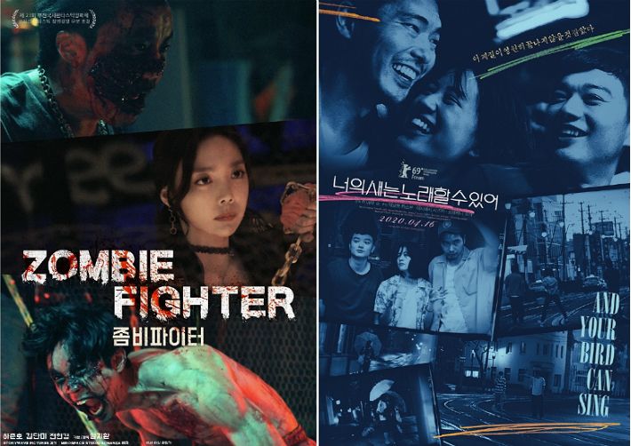 좀비 격투 액션 '좀비 파이터'와 청춘 영화 '너의 새는 노래할 수 있어'가 16일 관객들과 만난다.