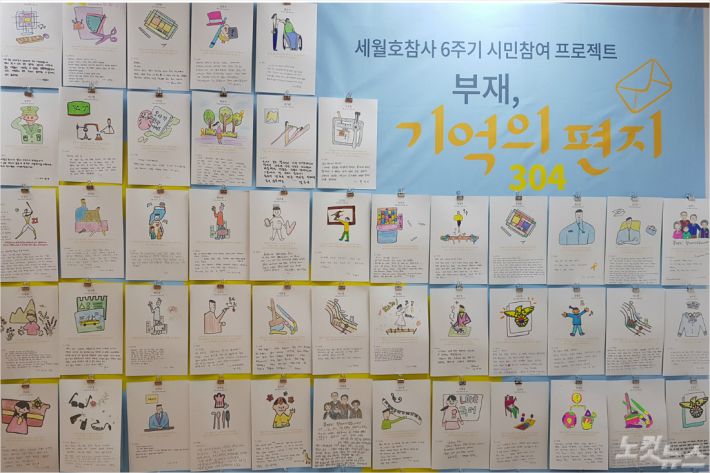 16일 세월호 광주시민상주모임에 따르면 상주 모임은 지난 12일부터 광주시 동구 광주 YMCA에 마련된 분향소에서 '부재, 304 기억의 편지' 주제로 마련된 온라인 프로젝트 결과물을 전시 중이다.