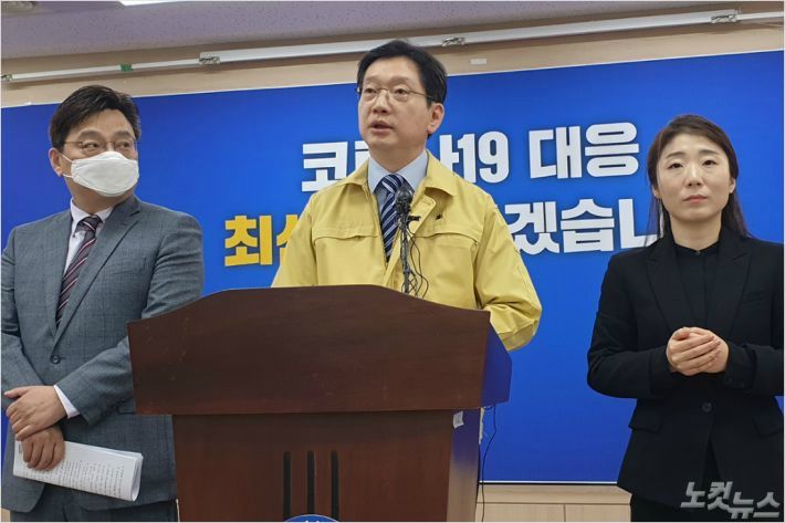 김경수 경남지사가 코로나19 관련 브리핑을 하고 있다. (사진=최호영 기자)