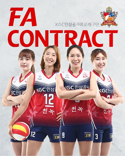V-리그 여자부 KGC인삼공사는 20일 자유계약선수(FA) 자격을 얻은 한송이, 오지영, 염혜선, 채선아와 모두 재계약했다고 밝혔다.