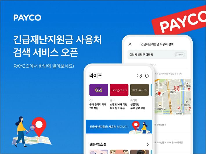 코로나19 사태에 따른 긴급재난지원금 제공이 시작되면서 사용처에 대한 관심이 높아진 가운데 NHN페이코가 22일 '페이코(PAYCO)' 앱 내에 '긴급재난지원금 사용처 검색' 서비스를 오픈했다.
