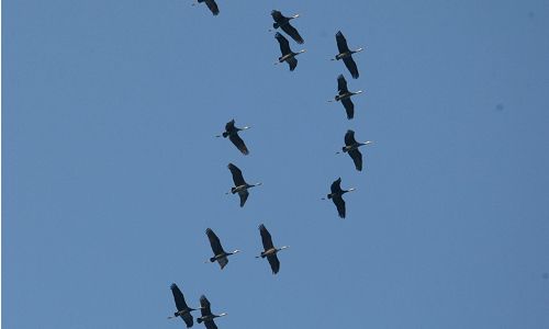 전남 신안 압해도에서 관찰된 흑두루미 무리(사진=신안군 제공)