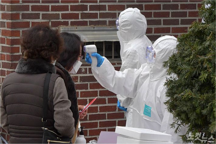 체온 측정하는 시민들.(사진=박종민 기자/자료사진)