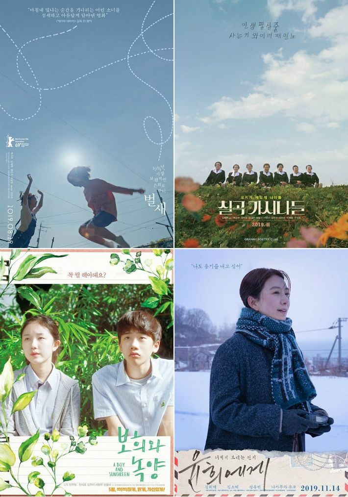 한국 독립영화들. 사진 왼쪽 위부터 시계방향으로 '벌새', '칠곡 가시나들', '보희와 녹양', '윤희에게' (사진=각 배급사 제공)