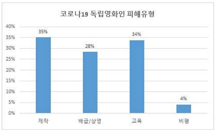 코로나19 독립영화 공동행동은 지난 6일부터 12일까지 독립예술영화 관련 개인(프리랜서), 단체, 기업 등을 대상으로 코로나19로 인한 독립예술영화 분야 피해 현황을 조사한 결과를 22일 발표했다. 이에 따르면 제작-유통∙배급-상영에 이르는 독립예술영화 생태계 전반에서 피해가 발생한 것으로 나타났다.