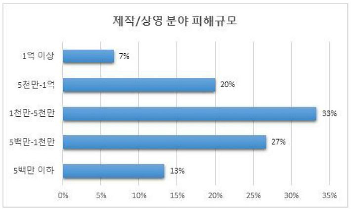 ◇ 독립영화인 주 수입원인 교육 연기·취소 피해 커…42%는 수입 '0원'독립영화인들 대부분 제작 분야 피해와 더불어 교육 분야의 피해를 호소하고 있다. 개인 응답자의 34%가 코로나19 사태 이후 교육 연기나 취소로 인한 피해를 겪고 있다고 밝혔다. 이들의 주 수입원은 영화교육인데, 코로나19로 학교, 미디어센터, 기관 등에서 진행하는 교육이 무기한 연기 또는 취소돼 직접적인 수익원이 사라졌기 때문이다.