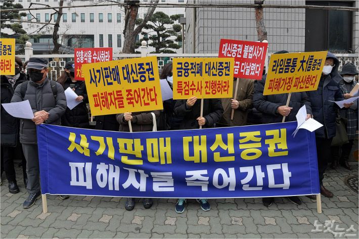 라임자산운용 대신증권피해모임 회원들이 라임자산운용사건 엄정수사 촉구하고 있다. (사진=박종민 기자/자료사진)