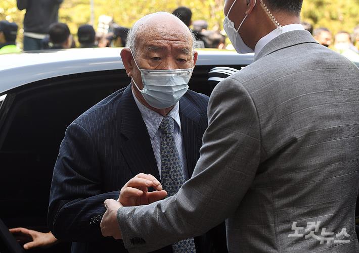 사자(死者) 명예훼손 혐의로 기소된 전두환 씨가 27일 피고인 신분으로 열린 광주 동구 광주지법에서 열린 재판에 출석하고 있다.