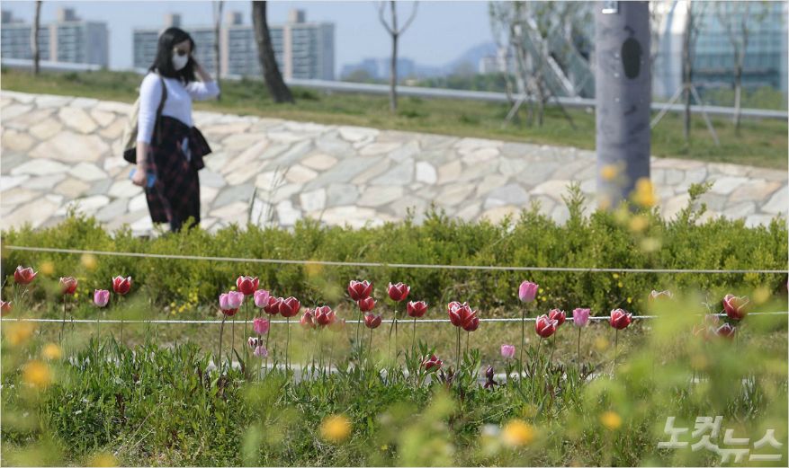 코로나19 신규 확진자가 10명대를 유지하는 등 확산 추세가 안정권에 접어든 28일 서울 서초구 반포한강공원에서 시민들이 산책을 하고 있다. (사진=이한형기자)