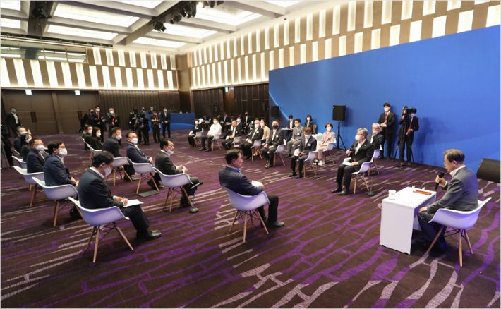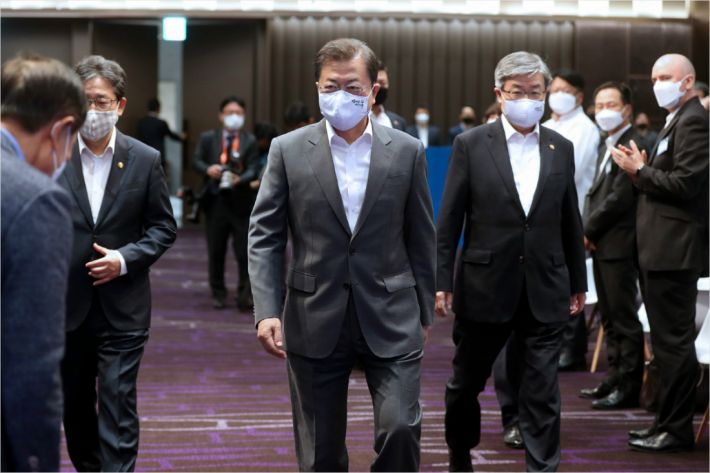 문 대통령은 특히 "정부의 가장 큰 걱정은 고용과 일자리를 어떻게 지킬 것인가"라며 "지금의 상황에서 기업의 사회적 기여 혹은 책임은 고용을 유지하는 것이다. 기업 혼자만의 힘으로 부족한 상황에서 정부는 강력한 지원 정책으로 기업의 위기극복을 뒷받침할 것"이라고 재차 강조했다.