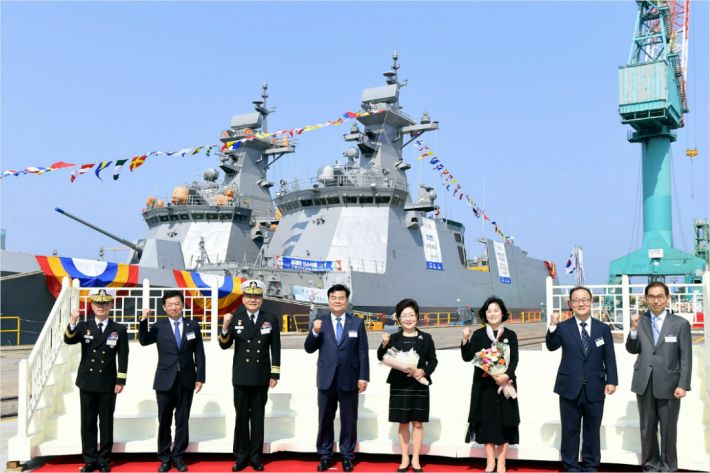 우리 해군의 신형 호위함인 '동해함(FFX Batch-Ⅱ, 2,800톤급)' 진수식이 29일 울산 현대중공업에서 거행됐다. (사진=해군1함대 제공)