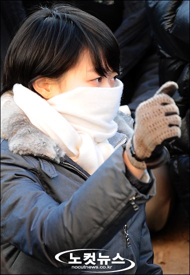 [BestNocut_R]한나라당의 7대 언론법안 처리에 반발해 총파업에 돌입한 전국언론노조 조합원들이 26일 오후 서울 여의도 국회의사당 앞에서 총파업 결의대회를 연 가운데 문지애 MBC 아나운서가 방송장악 저지를 촉구하는 구호를 외치고 있다.