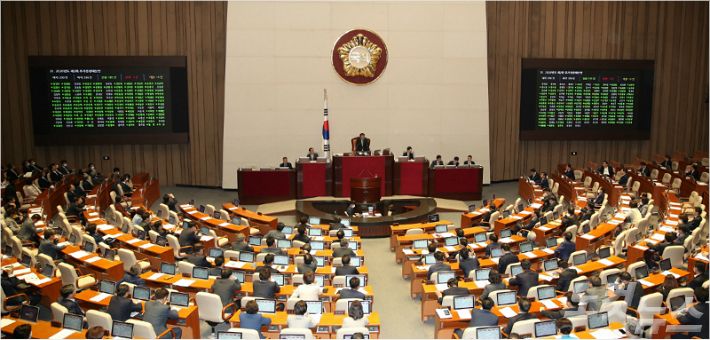 30일 국회에서 열린 제3차 본회의에서 2020년도 제2회 추가경정예산안이 가결되고 있다.(사진=연합뉴스)