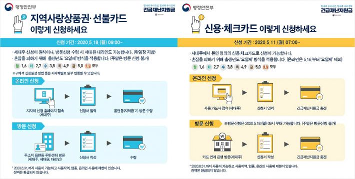 다만 신용·체크카드의 경우 16일부터는 요일제가 폐지되고 지역사랑상품권·선불카드의 방문신청은 토·일요일에 할 수 없다.