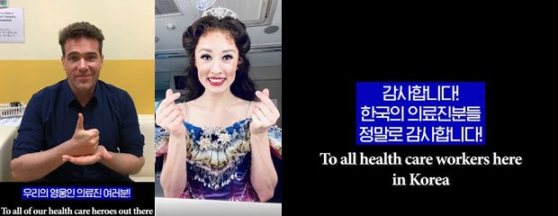영상에서 '유령' 역의 조나단 록스머스는 "우리의 영웅인 의료진 여러분! 저희의 밤의 노래(The music of the night)를 계속 이어갈 수 있도록 해주셔서 감사하다"라고 고마움을 전했고, '크리스틴' 역을 맡은 클레어 라이언은 "한국의 의료진분들 정말로 감사하다"는 메시지를 남기며 감사를 표했다.