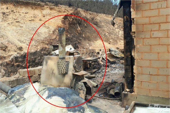지난 1일 발생한 고성 산불 화목보일러 잔재가 검게 그을린 채 남아 있다. (사진=유선희 기자)