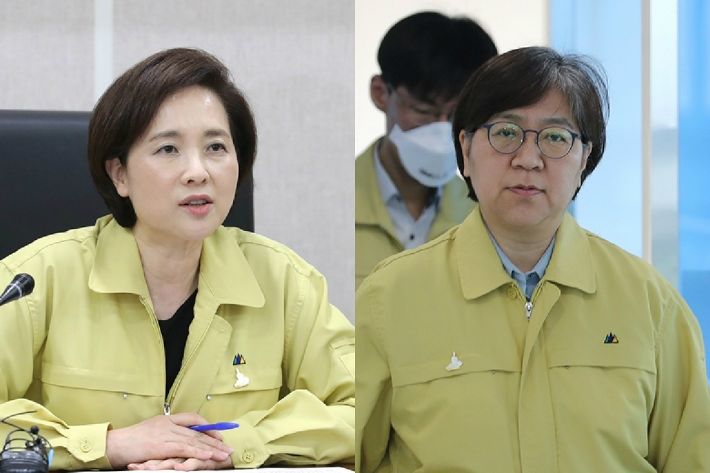 유은혜 부총리(왼쪽)와 정은경 본부장(오른쪽). (사진=연합뉴스)
