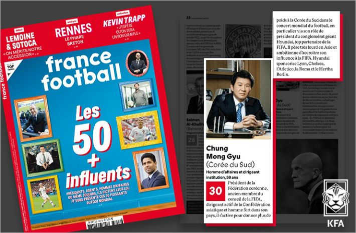 프랑스 풋볼은 정 회장을 “KFA 회장이자 전 FIFA 평의회 위원이며 한국에서 영향력 있는 인물”이라며 소개했다.