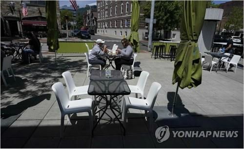 20일(현지시간) 경제 재가동 1단계가 시작된 미 코네티컷주의 한 카페에서 손님들이 점심식사를 하고 있다. (사진=연합뉴스)