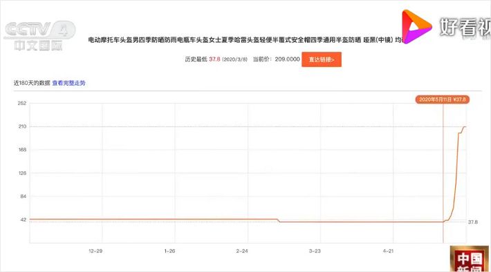 중국 CCTV 보도에 따르면 지난 11일에 37.8위안이던 헬멧 가격은 최근 209위안으로 뛰었다. 상인들이 물량을 확보해 비싼 가격에 판매하는 경우도 있다.