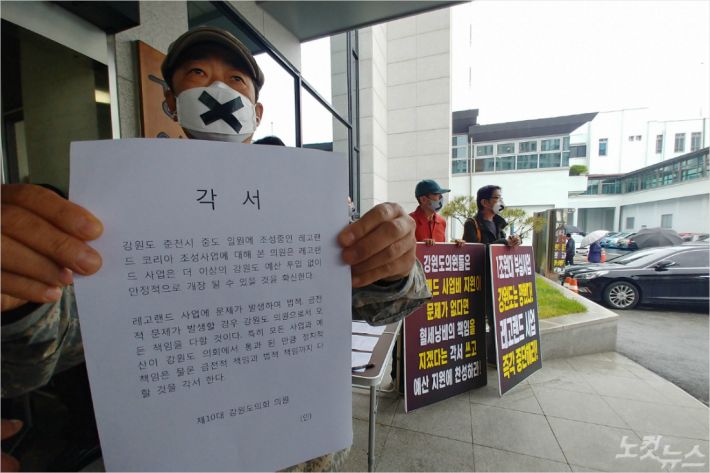 오동철 춘천시민사회단체 네트워크 운영위원장은 "부지가 아무런 변경이 없는데 33억원에 소유권을 넘긴 강원도 부지를 8배나 높은 가격인 255억원에 강원도가 재매입하는 것은 222억원의 손해를 보는 것"이라며 "강원도민의 혈세가 낭비되는 결정에는 법적, 정치적 책임을 분명히 묻겠다"고 말했다.
