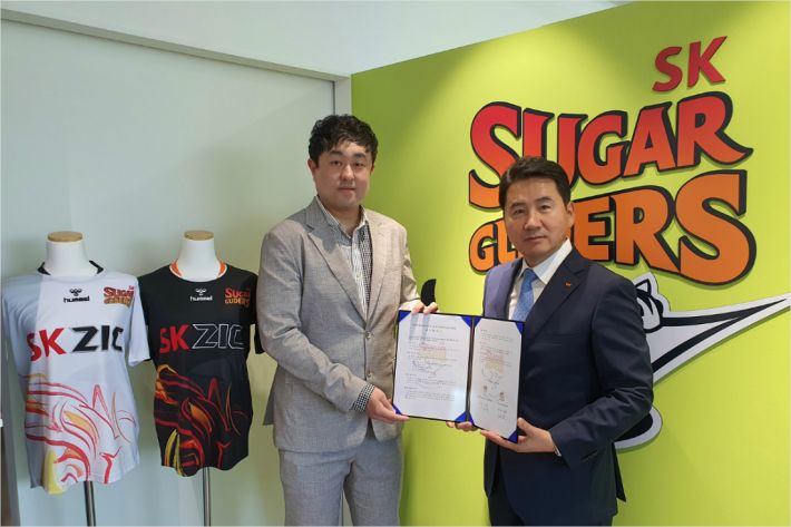 SK슈가글라이더즈는 29일 K-GYM 스포츠클럽과 함께 핸드볼 저변 활성화를 위한 유소년 핸드볼 클럽 창단 협약식을 진행했다. SK슈가글라이더즈와 K-GYM은 2017년 핸드볼 관람 문화체험 프로그램 자매결연 이후 다양한 상호 협력 관계를 이어오다 '주니어 슈글즈 클럽' 운영에 합의했다.
