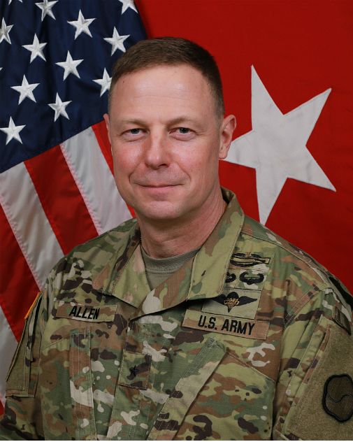 스티븐 알렌 준장은 1984 년 미육군 예비군에 입대해 대학교 졸업과 동시에 보병 장교로 임관하고, 아프가니스탄 항구적 자유 작전에 파병되었으며, 2012년 7월부터 2014년 7월까지 텍사스주 포트 후드에 위치한 407 육군 야전지원 여단장을 역임했다.