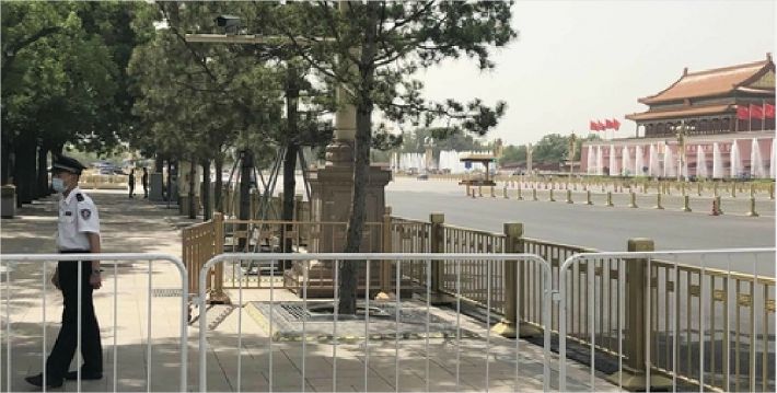 3일 베이징 톈안먼 앞 인도가 차단돼 있다(사진=연합뉴스)