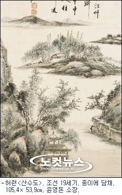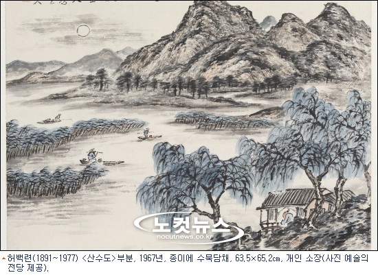 <산수도>는 화첩이나 병풍 형식의 반절지 그림이 많은 허련의 그림으로는 보기 드문 대작이다. 좋은 장지 전지에 잘 짜여진 구도, 자연스러운 채색, 활달한 붓선이 만들어낸 수작이다. 이 작품은 일제 강점 하에서 많은 고미술을 수집하였던 대수장가 박창훈이 소장하였던 작품이다.