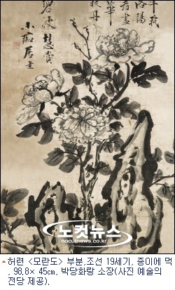 이 작품은 진도 출신의 벽파선사(19세기 활동)에게 그려준 것으로 문인 취향을 겸비한 허련 특유의 모란도를 보여 준다.