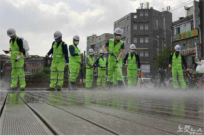 코로나19 대비 다중이용시설 청소. (사진=박종민 기자)