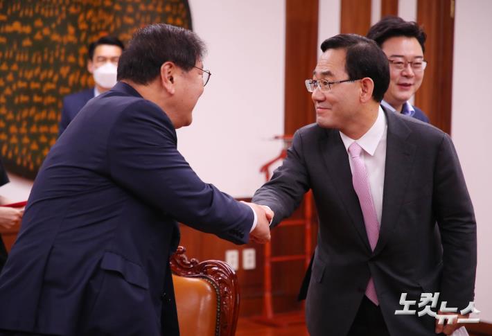 악수 나누는 김태년-주호영