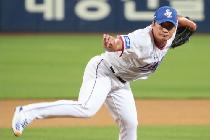 9일 오후 대구 삼성라이온즈파크에서 열린 2020 프로야구 키움 히어로즈와 삼성 라이온즈의 경기. 8회 초 삼성 오승환이 마운드에 올라 역투하고 있다. (대구=연합뉴스)