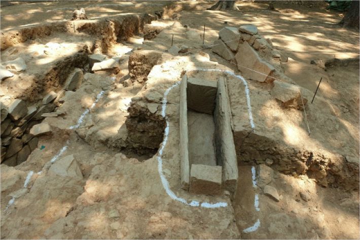 진주시 가좌동 하나의 봉분에서 피장자와 함께 6명이 함께 순장된 무덤. (사진=진주시 제공)