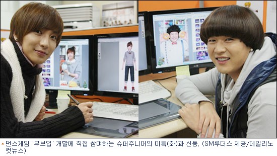 특히 이특과 신동은 향후 ''무브업''에 추가 될 슈퍼주니어-해피 여섯 멤버의 캐릭터 개발 작업에도 참여했다. 완성 단계에 다다른 자신들의 캐릭터를 살펴보고 멤버 별로 춤 출 때의 습관과 즐겨 하는 액세서리 등 실제 주인공이 아니면 할 수 없는 다양한 의견을 개발팀에 제시한 것. 이특은 "얼굴에 보조개를 넣어달라"고 특별 주문을 하기도.