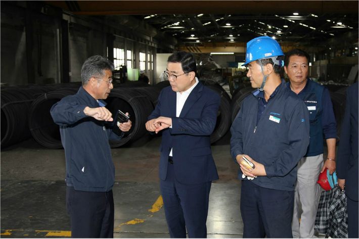 허 시장은 간담회를 가진 후 와이어 로프, 경강선 등의 철강 생산현장 둘러봤다.