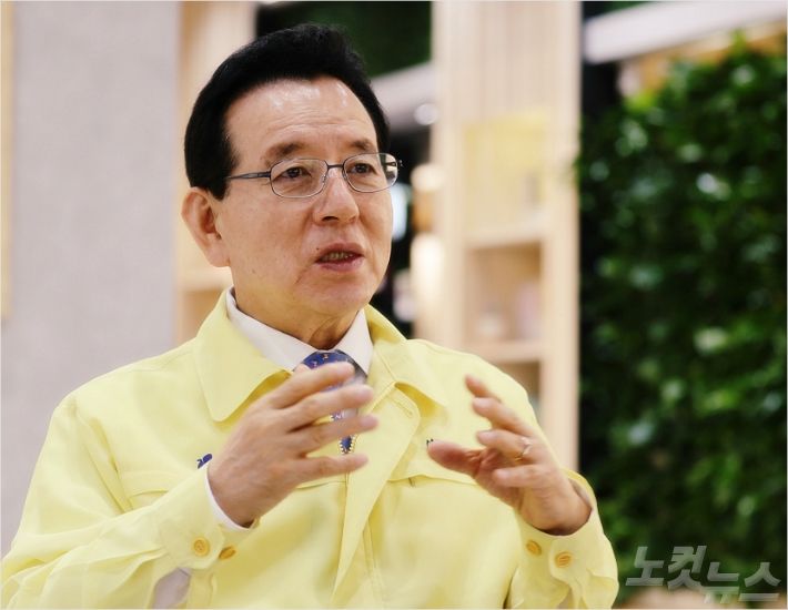 정순균 강남구청장이 강남구수어통역센터 내 농아인쉼터에서 CBS노컷뉴스와 인터뷰하고 있다. (사진=김재두PD)