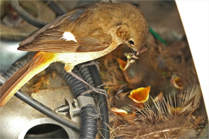 이 딱새가족은 지난 달 중순 직원들이 사용하는 업무용 전기 차 안으로 날아들었다. 당시 엔진룸 한쪽 편에 자리한 둥지에는 갓 부화한 7마리의 새끼가 자리를 채우고 있었다.