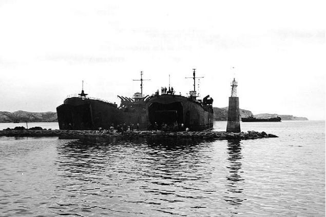 1950년 7월 18일 포항에 상륙한 LST 2척. (사진=포항6.25 제공)