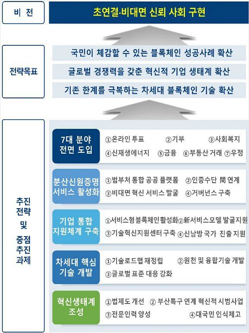 과기정통부는 블록체인 기술의 확산을 적극 추진하겠다는 계획으로 2018년 '블록체인 기술 발전 전략'을 수립, 기술 발전과 시장 형성을 지원해왔다.