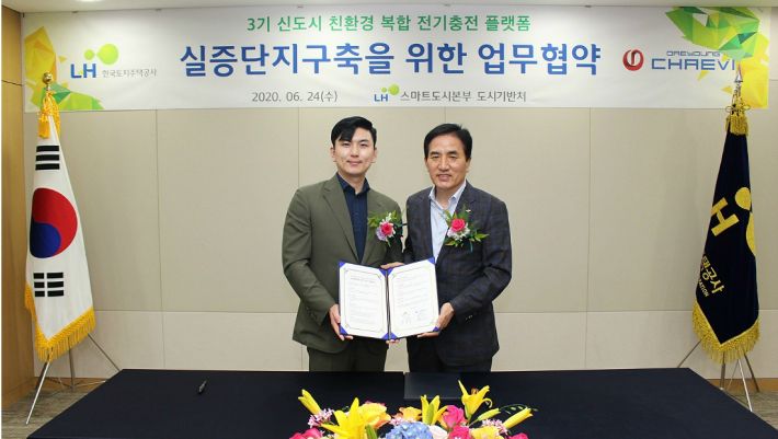 한병홍 LH 스마트도시본부장은 "이번 협약을 계기로 미래 친환경 에너지를 활용하는 전기자동차 등 다양한 전기충전 인프라 확장에 기여하고, 신규 일자리 창출 등 사회적 가치 창출에도 앞장서겠다"고 밝혔다.