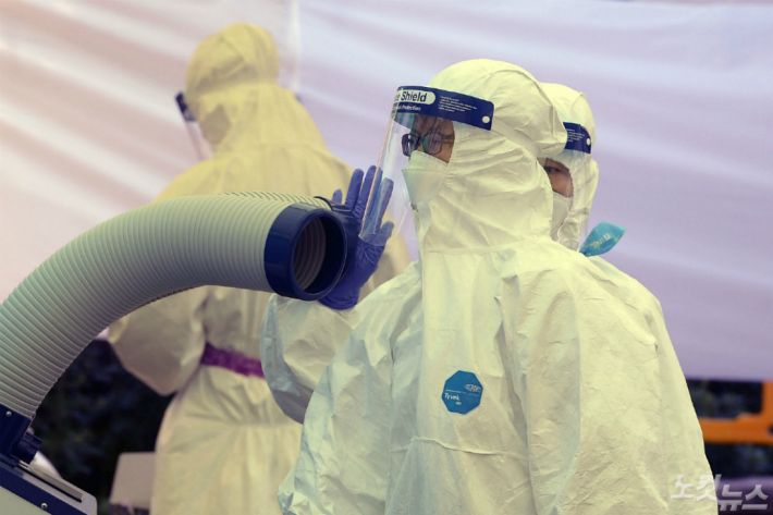 서울을 비롯한 수도권에 폭염주의보가 발효된 지난 22일 오후 서울 강서구 보건소 선별진료소에서 의료진이 더위를 식히고 있다. (사진=이한형 기자/자료사진)